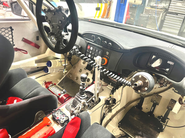 Inside, the cockpit was stripped and rebuilt to rally spec. A Tilton pedal box, Monit rally computer, Stilo intercom, and a full MoTeC computer system including a C125 dash, M1 ECU and Motec 15 button keypad were installed, along with a custom loom, PDM, and onboard fire suppression. We also 3D-printed and custom-fabricated mounts and fittings throughout the interior to maximise durability and serviceability.