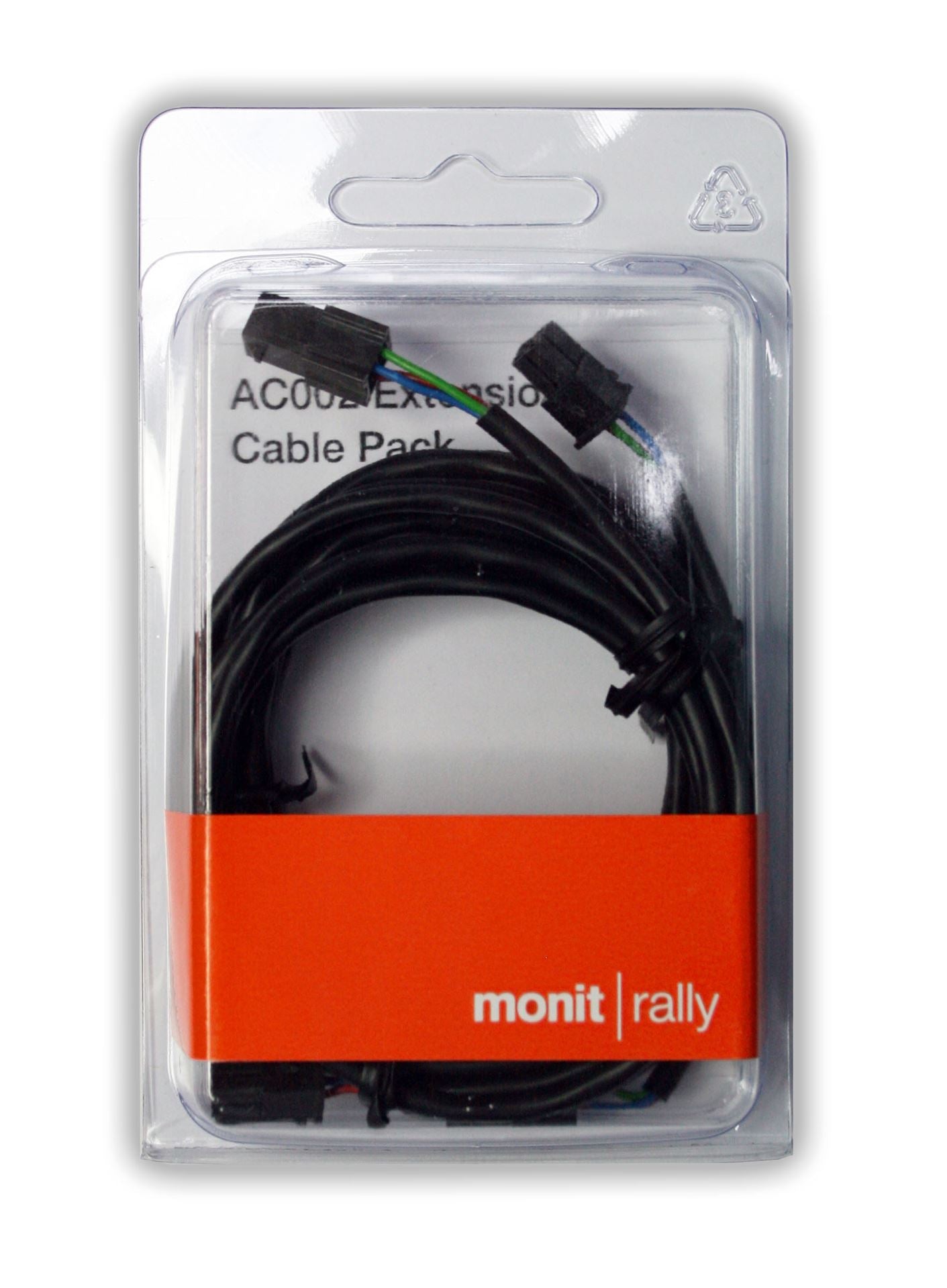 The wiring extension kit can be used to extend the distance between a Monit rally computer and a wheel speed sensor. The kit includes two extension leads of one metre and two metre lengths. The shortest length should be selected for each installation to reduce the chance of interference.
